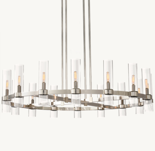 Crafted of solid steel, unadorned metal bands hold the slender glass cylinders in place, in a state of perfect equipoise. Art deco forms are reimagined with a modern minimalist sensibility in this collection from renowned lighting designer ian k. The 40″ rococo chandelier is $3495 at rh. Ravelle round chandelier 36 $ 4195.0 regular See more ideas about restoration hardware lighting, light fixtures, light.